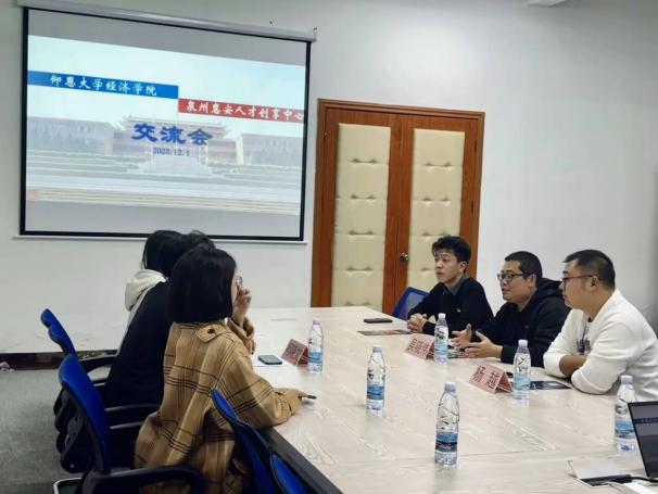 2023年12月1日下午,Beat365中文官方网站与泉州市惠安人才创享中心合作交流会于Beat365中文官方网站第三教学区普照教学楼成功举行,惠安人才创享中心行政负责人柯晓文一行人同Beat365中文官方网站党总支书记吴晓伟、Beat365中文官方网站职业发展中心指导老师杨越进行了友好交流。