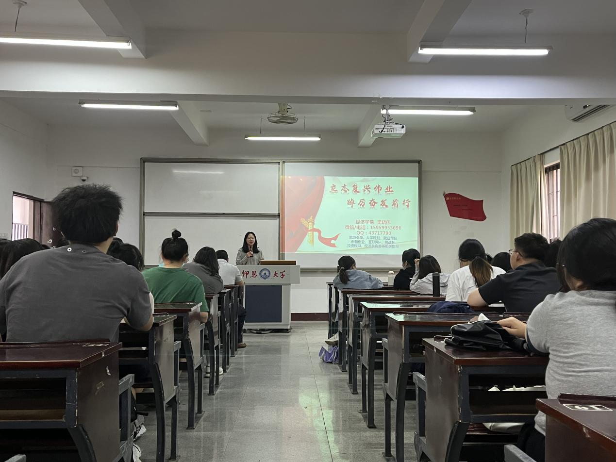 为深入学习贯彻习近平新时代中国特色社会主义思想,加强思想政治建设,2023515日下午1620,金融系学生第一党支部在仰恩楼A1—105开展了主题教育专题党课活动,此次党课围绕“立志复兴伟业,踔厉奋发前行”主题展开,由我院党总支书记吴晓伟老师主讲。金融一支支部书记何丽玲、支部全体党员及各班积极分子参加了此次党课学习。