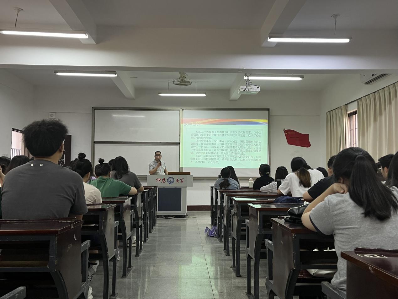 党课中,吴晓伟老师着重强调了开展此次主题教育的形势背景和重大意义,从今年两会的内容和精神入手,带领大家深刻领悟此次主题教育的内涵。活动期间,吴晓伟老师对“两会主要看点”进行讲解,从几个方面回顾了此次盛会,表明了两会对国家和人民具有极为重要的意义。在吴晓伟老师的生动讲解下,同学们加深了对两会的认识,纷纷表示作为新时代新青年,应紧跟党的步伐,学习党的伟大精神,不断追求进步与成长。