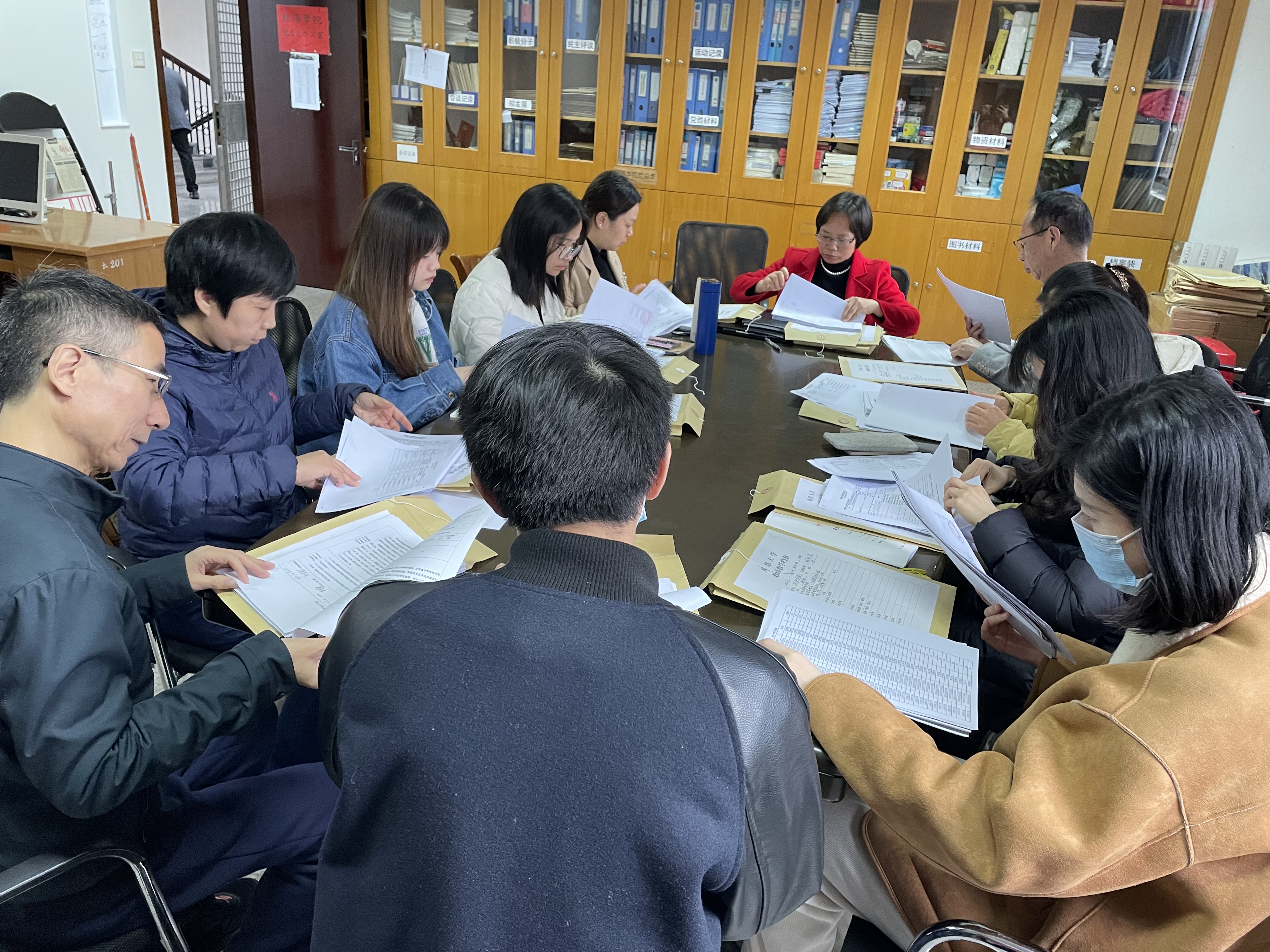 会上,经济学系主任颜秀金首先对上学期经济学系的工作作了总结,并对本学期的工作重点作了大致的部署,紧接着说明本次期初教学检查的具体安排和上学期教学材料检查的具体内容和规则。通过对相关教学材料的交叉检查,老师们相互学习借鉴,同时对教学材料完整准确的老师提出表扬,对检查中发现的问题进行现场讨论和整改。