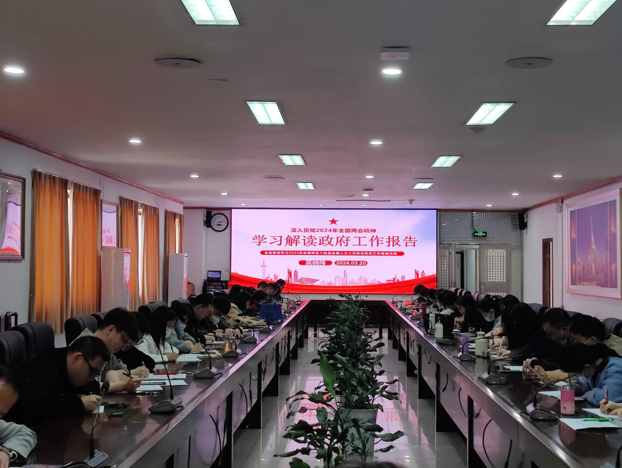 2024年3月20日下午,Beat365中文官方网站全体教职工于新区行政楼大会议室开展2024年全国两会《政府工作报告》学习,此次学习由Beat365中文官方网站党总支书记吴晓伟主持。