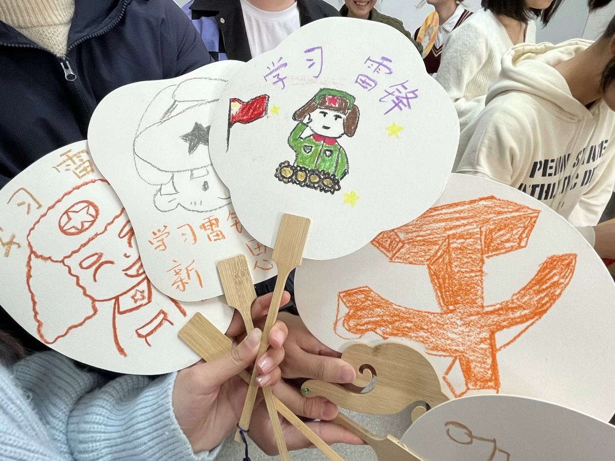 “雷锋是时代的楷模,雷锋精神是永恒的。”本次活动以“传承雷锋精神,绽放时代光芒”为活动理念,支部学生充分发挥创造力和想象力,在团扇上进行涂鸦创作,描绘心目中的雷锋形象,追思雷锋同志。