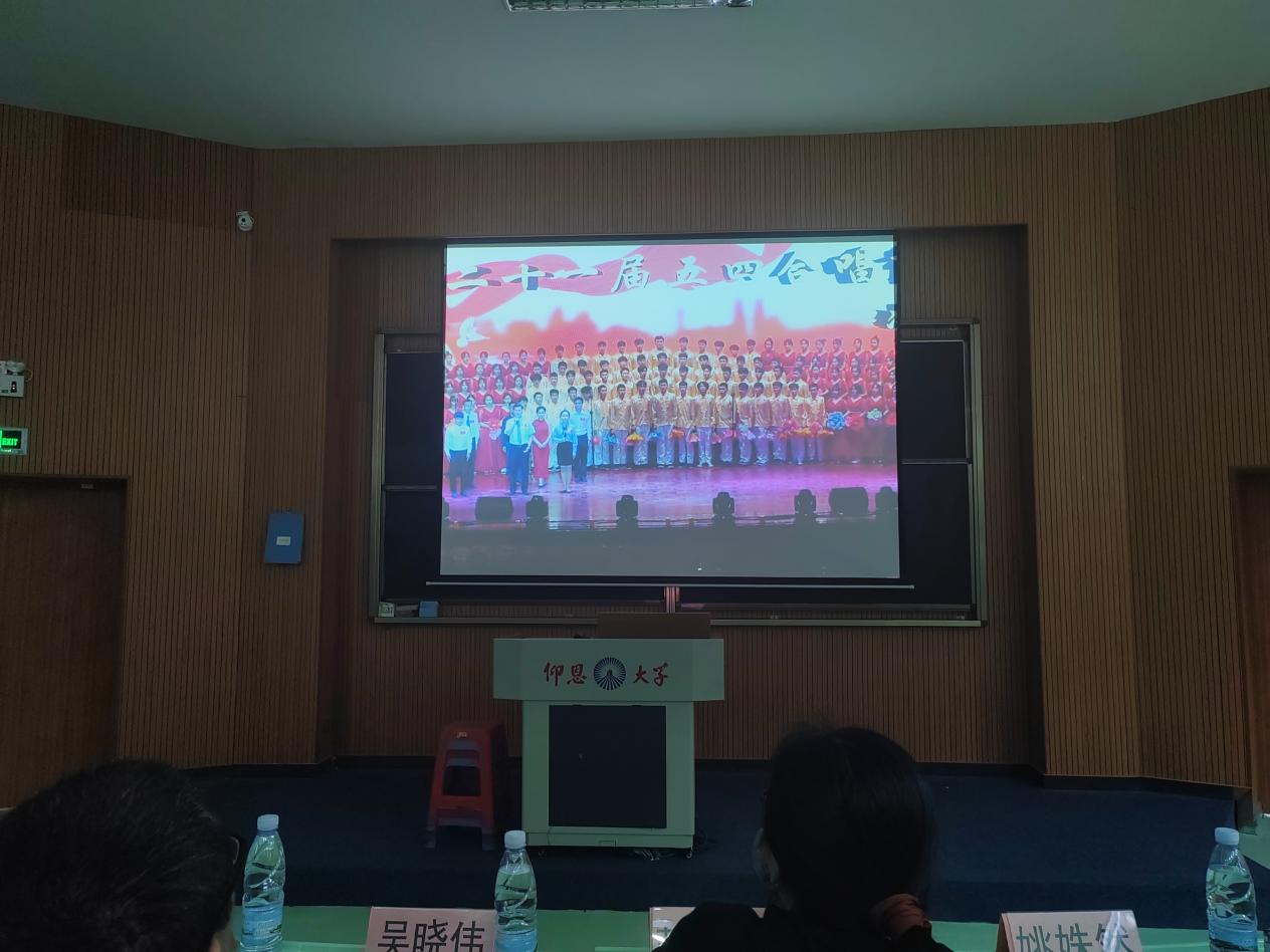 在大会上,主持人向我院学子们展示了往届五四合唱优秀队伍的视频以及优秀成果,以此激励更多同学踊跃参与。随后由我院吴晓伟老师发言,分享宝贵经验,鼓励大家积极参与。