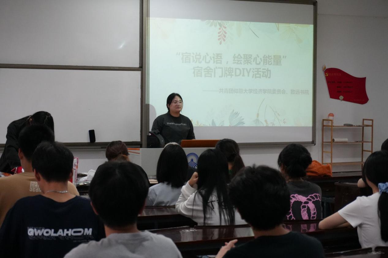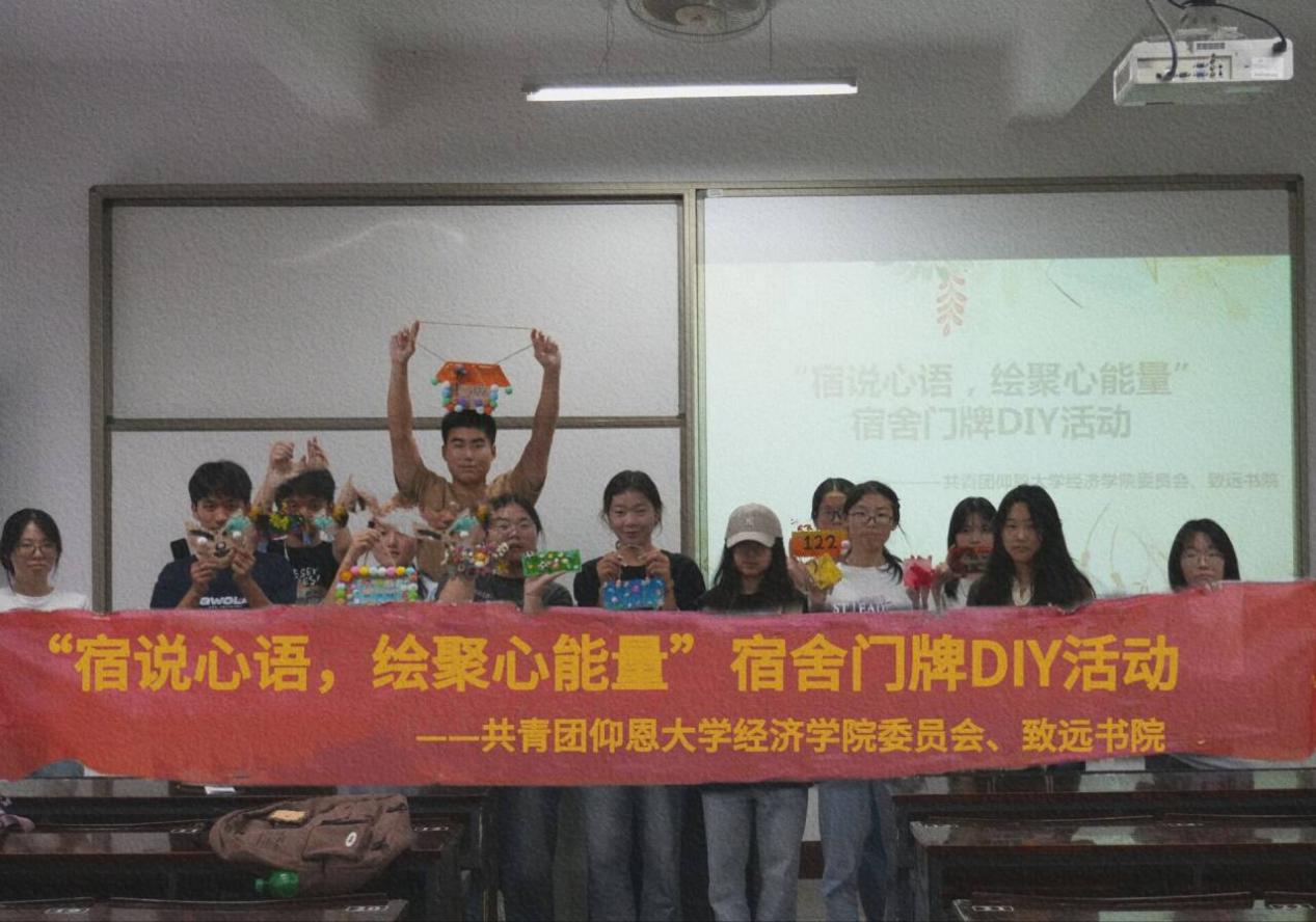 为倡导大学生了解自我,关爱自我,进一步推进宿舍文明建设,营造温馨、健康、和谐的宿舍氛围,Beat365中文官方网站团委联合致远书院以“525心理健康日”为契机,于5月22日下午在仰恩楼A5-305教室举办“宿说心语,绘聚心能量”宿舍门牌DIY活动。