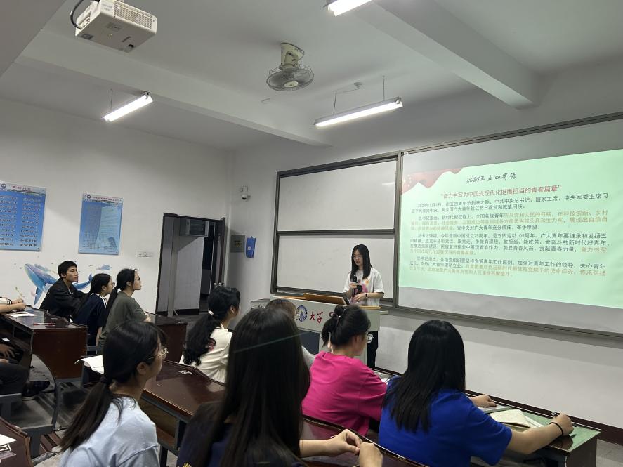 团课中,姚姝然老师强调,广大青年要继承和发扬五四精神,坚定不移听党话,跟党走,争做有理想,敢担当,能吃苦,肯奋斗的新时代好青年,在推进强国建设,民族复兴伟业中展现青春作为,彰显青春风采,贡献青春力量,奋力书写为中国式现代化的青春篇章。