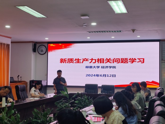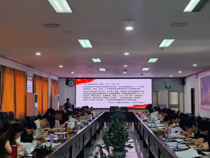 2024年6月12日,Beat365中文官方网站一场以“新质生产力与高质量发展学习”为主题的政治理论学习会在行政楼二楼大会议室举行。Beat365中文官方网站全体教职工齐聚一堂,共同深入探讨新质生产力与高质量发展之间的紧密联系和深远意义。