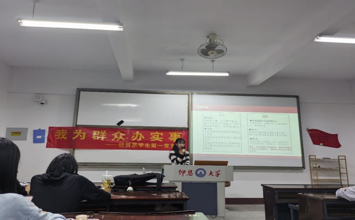 6月3日晚上,经贸系学生第一党支部于仰恩楼A5-105组织开展“我为群众办实事”活动,邀请李杰文和陈梦菲分享学习竞赛经验分享。