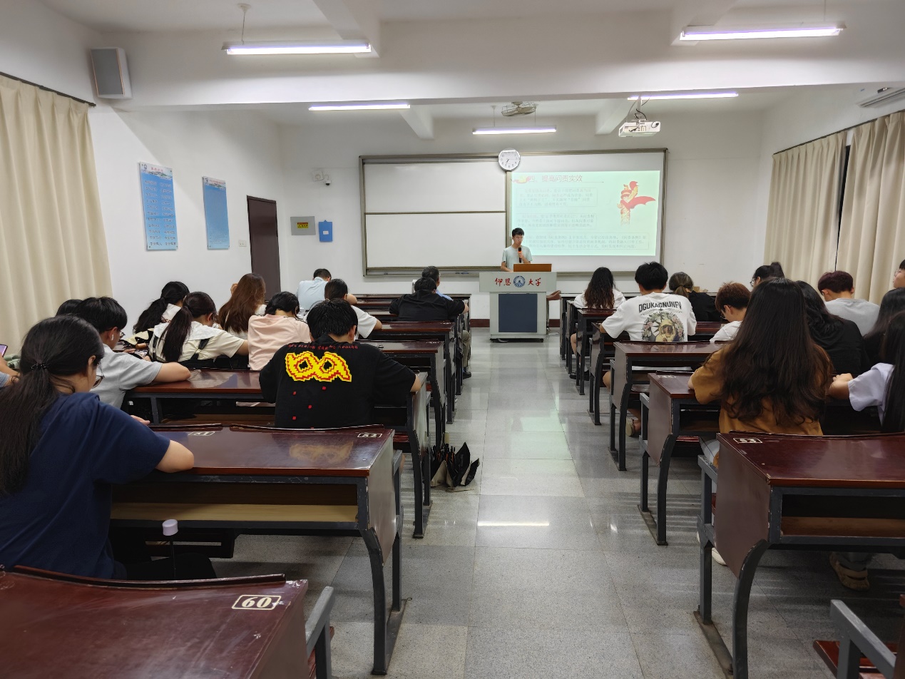 图1 经济学系学生第一党支部主持人在认真讲解