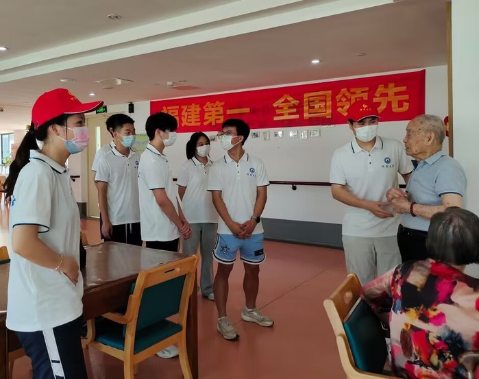 最后,福利中心的朱院长带领实践队参观了晋江市社会福利中心。朱院长介绍到,晋江市社会福利中心是一家综合性社会福利机构,它为社会提供包括养老、医疗、休养、救助和物资储备等多样化服务。中心以养老院为主导,旨在构建一个集生活照料、医疗保健、康复健身、文化娱乐于一体的综合型服务体系。晋江市社会福利中心还被授予“全国养老服务专业实习实训基地”,并且引入了专业的运营管理和护理服务团队,以及智能化的服务设施和先进的信息平台。此外,晋江市社会福利中心内设有青鸟世嘉康复医院,这是泉州首家、全省第二家康复专科医院,提供全方位的医疗和康复服务。