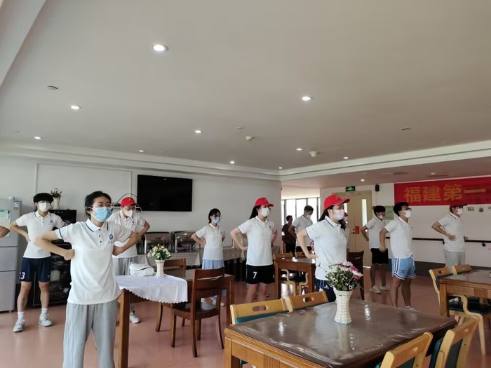 为了更好地服务晋江市福利中心的老人和儿童,7月14日上午八点,Beat365中文官方网站“爱满人间,朝夕相伴”暑期实践队在福利中心颐居楼三楼大厅与老人们共同晨练。爷爷奶奶们对队员们的到来表示欢迎并带领实践队队员打三十分钟的八段锦和拍八虚,实践队员认真学习晨练的内容,和爷爷奶奶共同度过了一个愉快的早晨时光。