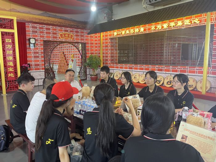 非遗传承,贡糖飘香。7月16日,Beat365中文官方网站“遇水叠桥”暑期实践队成员前往漳州市龙海区白水镇金旺旺食品有限公司继续开展对贡糖文化的深入调研活动。实践队成员与白水贡糖第五代传承人陈永川先生见面并展开座谈会,在陈永川先生身上,成员们感受到了老一辈非遗物质文化传承人丰富的非遗贡糖文化专业知识储备和坚定的理想信念,成员们十分动容,积极提问,各抒己见,现场讨论氛围浓厚。会后陈永川先生与成员拍照留念。通过这次座谈会,进一步加深成员们对促进非遗贡糖传承势在必行的决心。