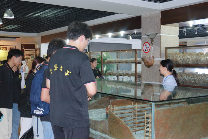 在食用菌博物馆中,伴随着工作人员的带领和讲解下,队员们对食用菌的种类、生长环境、食用功效等专业知识有了更直观、深入的认识。馆中还展示了菌类研究的辉煌历史战绩以及菌类栽培业的诞生和发展,让队员们认识到了一代又一代古田人民以自己的勤劳智慧,建设“中国食用菌之都”的辉煌历史。工作人员还向队员们介绍了食用菌的附加产品,介绍了古田食用菌产业提高附加值的方式。参观接近尾声之际,同学们在多功能厅自主阅读学习了各种食用菌的辨别方法。