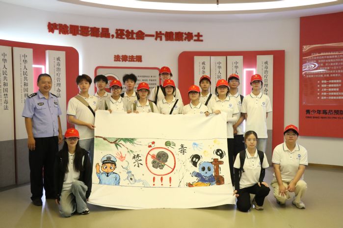 活动当天,实践团队在民警带领下参观惠安县林则徐禁毒教育基地,通过听取介绍、参观展陈、互动体验、禁毒宣誓等形式,系统地学习禁毒知识,有力提升学生识毒防毒拒毒意识。实践队员员们庄严宣誓,表达了拒绝毒品、参与禁毒的决心,并且还进行了有关禁毒方面创作。随后实践队还先后参观了东桥镇社区戒毒社区康复工作站、净峰镇西头村禁毒品牌社区,与基层镇村干部、禁毒社工进行交流,了解基层日常禁毒工作开展情况,对毒品及其危害有了深入的了解,同时也表达了对基层禁毒工作者的敬意。