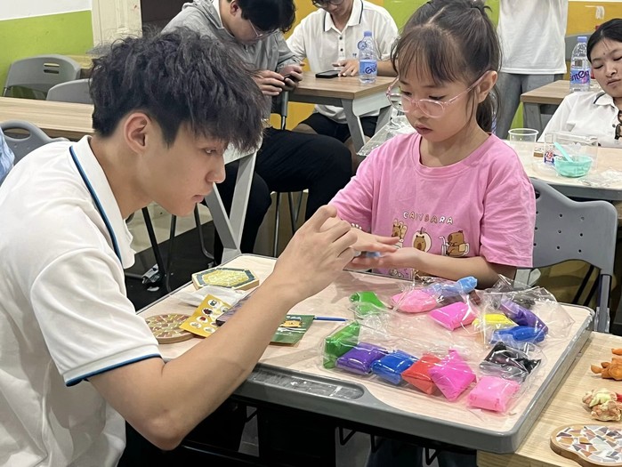 图2 实践队员耐心教小朋友制作黏土
