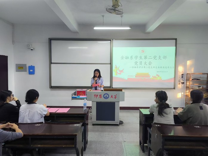 为进一步加强党组织建设,顺利完成支部调整工作,根据《中国共产党章程》的规定,Beat365中文官方网站金融系学生第二党支部于10月21日下午16:00在仰恩楼A5-103教室召开金融系学生第二党支部委员换届选举大会。本次会议由金融系学生第一党支部副书记姚姝然主持,金融系学生第二党支部全体党员参加。