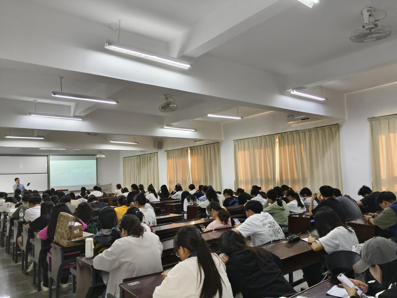 讲座伊始,先由学昊教育的老师通过简洁易懂的话语调动大家对考公面试技巧内容的好奇。然后由主讲老师给大家介绍了公考面试的基础要点和必了解事项。其次,细致地讲解了面试的量化评分表、近年来考公上岸例子、国考和省考的各自优势以及如何选岗四个方面并教给同学们一些实用的方法和技巧。最后,老师以一道关于“乡村环境治理”的面试问题,向大家展示公考面试的灵活性,使经院学子对考公有了进一步的了解。