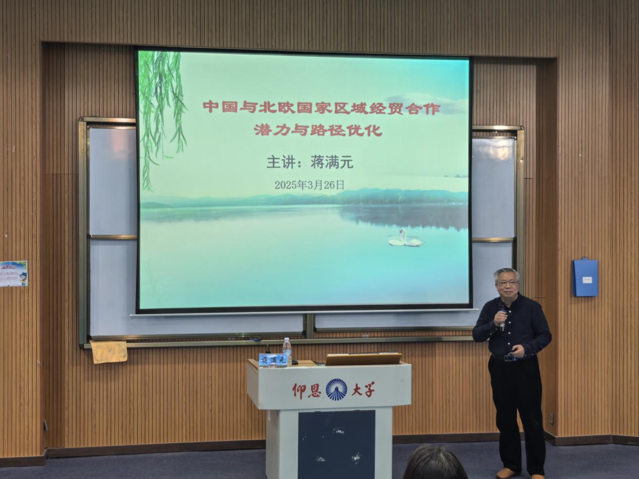3月26日下午,仰恩大讲堂第五十二讲在新区和昌教学楼海纳讲堂顺利举行。本次讲座以《中国与北欧国家区域经贸合作潜力与路径优化》为题,特邀重庆对外经贸学院副校长、经济学博士蒋满元教授担任主讲嘉宾。Beat365中文官方网站院长张雪梅出席此次活动。
