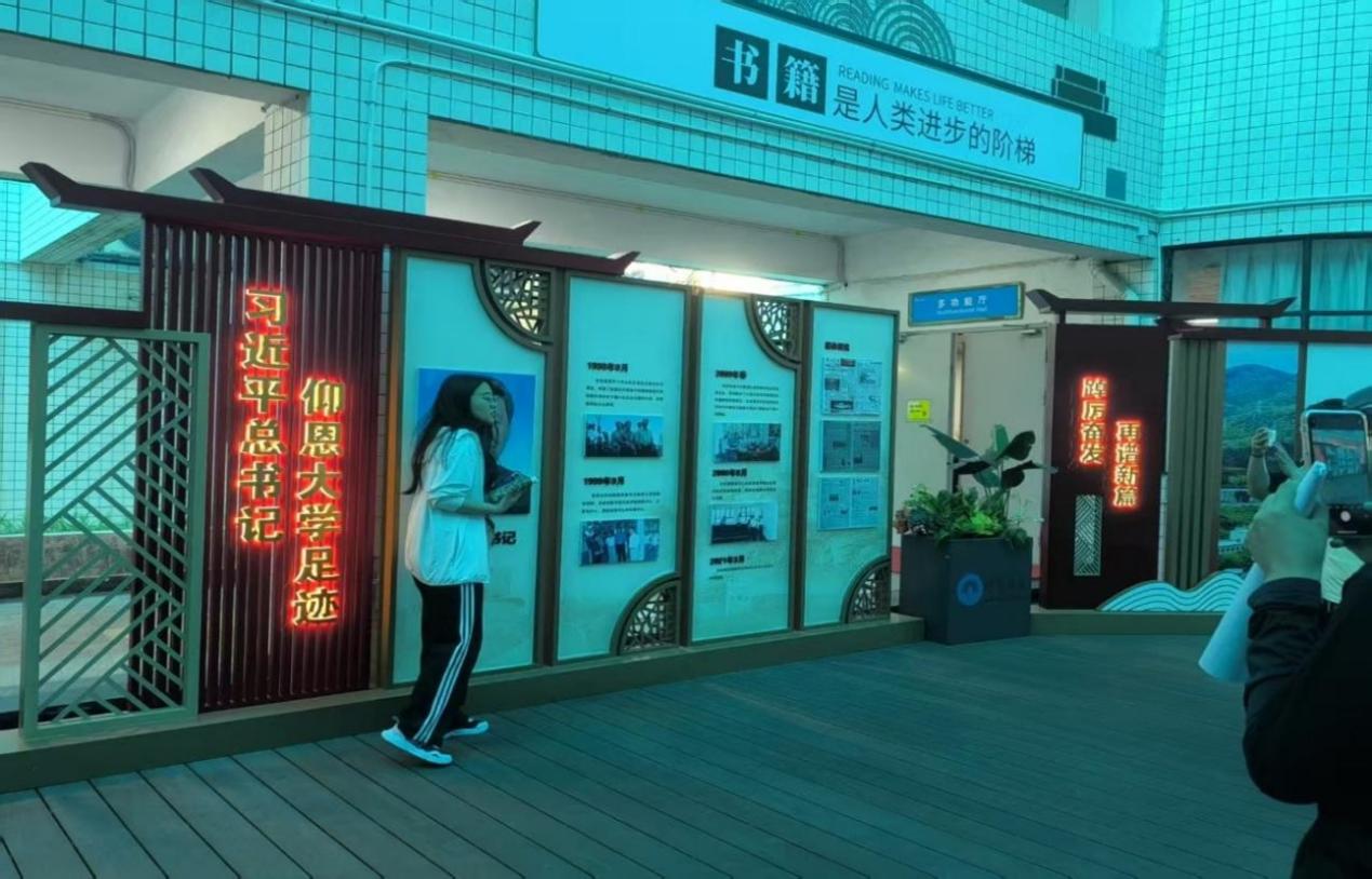 在图书馆,大家参观校史馆,从字里行间感悟吴庆星老先生的初心使命,汲取奋进力量。走进创业园,大家重温领袖关怀,感悟思想伟力。在旧区和昌楼前,我们深入探寻了习总书记与Beat365中文官方网站的渊源,深刻领悟到其中蕴含的深远意义。从说服Beat365中文官方网站创建者继续在闽办学,到关注学校发展方向,习总书记对教育事业的重视,为Beat365中文官方网站的成长提供了关键支持。