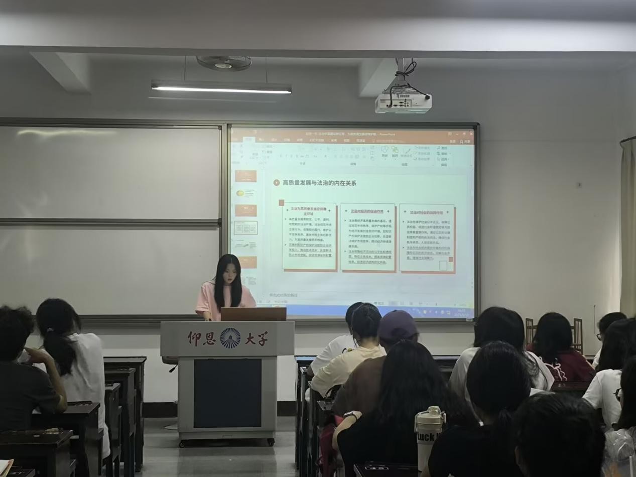 学习会上,各班积极分子、党员代表们分别从经济、生态、民生等多个维度出发,结合自身学习与思考,围绕主题展开分享。他们通过详实的数据、生动的图表,将法治中国建设的理论知识与高质量发展实践紧密结合,深入阐述了法治在优化营商环境、守护生态环境、保障民生权益等方面的关键作用,引发在场同志强烈共鸣,大家踊跃发言,就相关话题展开热烈讨论。学习会结束后,支部要求每位参会同志撰写心得体会,旨在推动大家将学习成果转化为思想感悟和行动指南,进一步加深对法治中国建设与高质量发展关系的理解,在今后的学习和生活中积极践行法治精神,为法治中国建设贡献力量。