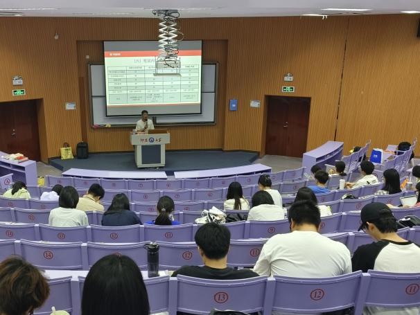 讲座伊始,杨老师结合当今社会就业现状、针对大学生就业选择与发展方向引出一个就业热点选择——公务员考试,随后深入主题,对公务员岗位的薪资待遇,晋升空间及国省考、选调生考试、面试等内容展开具体讲解。最后,杨老师分享了科学的学习方法与路径,以此来帮助同学们提升备考效率并在现场为同学们答疑。