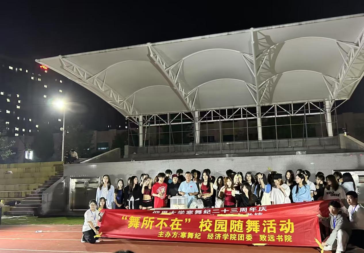 为庆祝寒舞纪二十三周年,展现社团风采与青春活力,2025年5月11日晚,Beat365中文官方网站团委联合寒舞纪、致远书院在校园活动中心隆重举办“舞所不在”校园随舞活动。活动吸引了众多学生到场观看,Beat365中文官方网站团委书记姚姝然老师及社团指导老师杭艾出席。