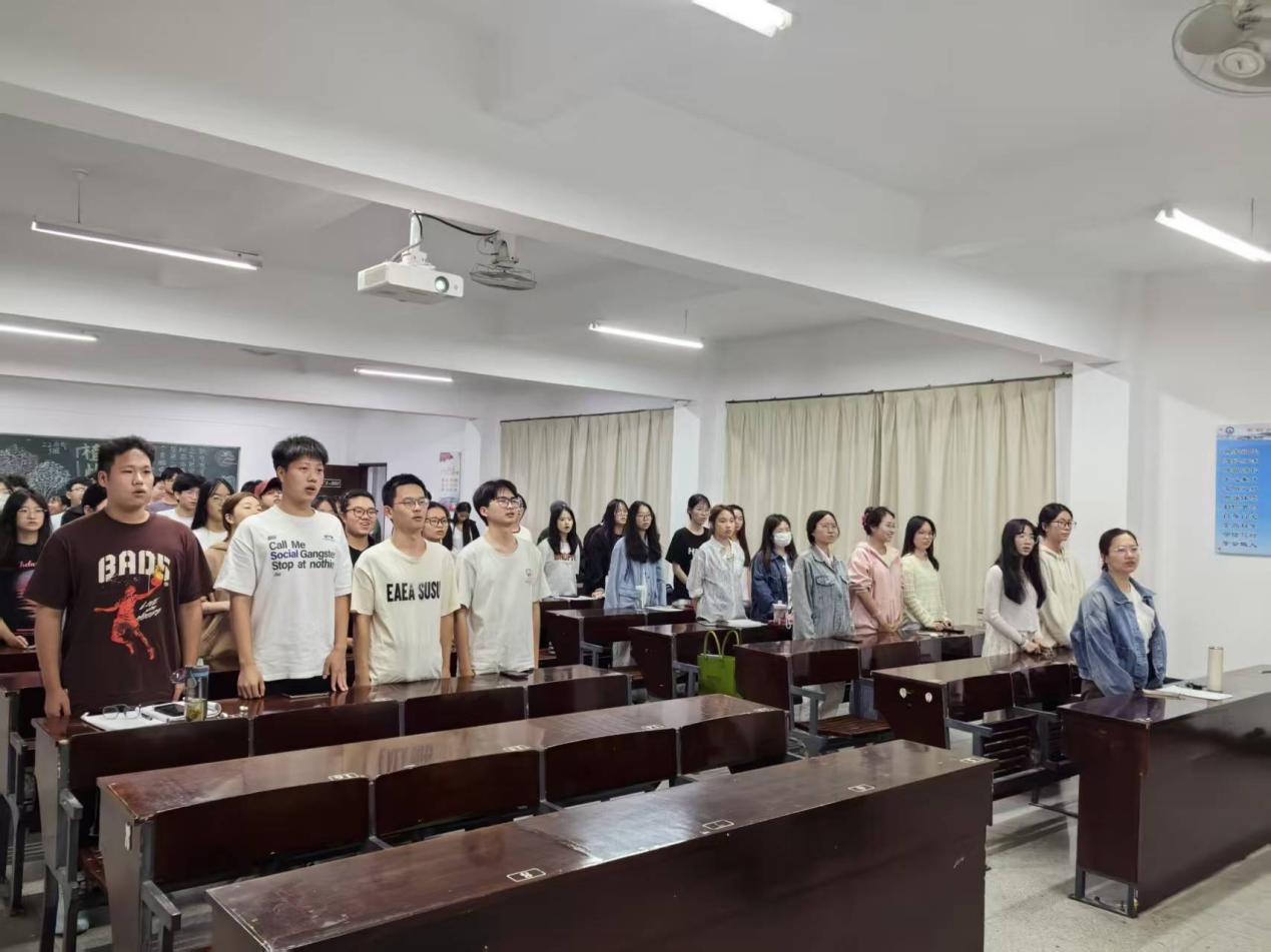 图2 何丽玲老师带领全体党员及入党积极分子齐唱红歌