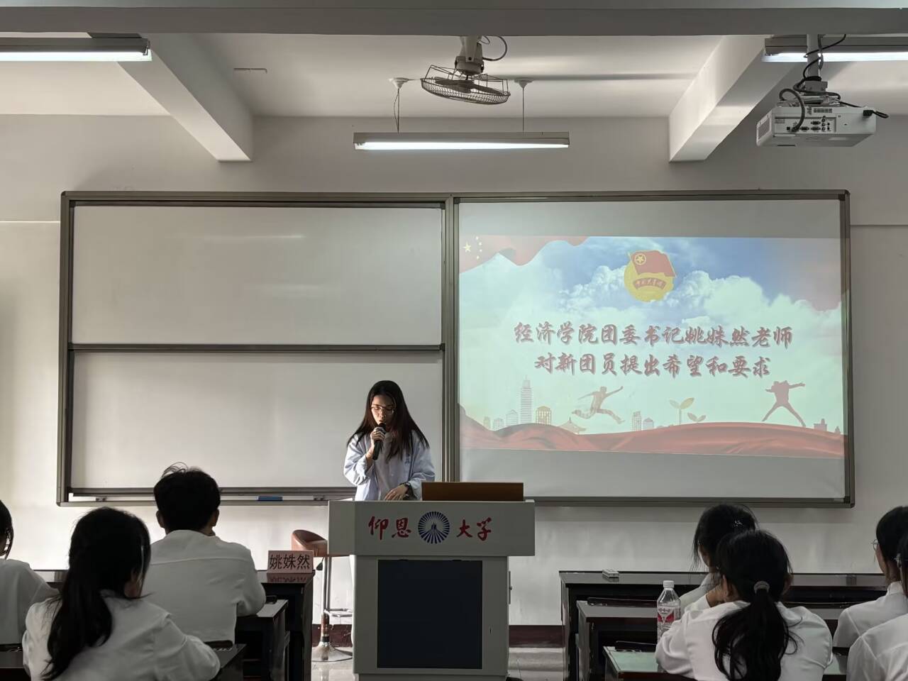 为加强我院共青团队伍建设,贯彻社会主义核心价值观,增强青少年进取意识,迎接新的一批团员入团,Beat365中文官方网站团委于2025年5月26日下午在仰恩楼举行了新团员入团仪式,Beat365中文官方网站团委书记姚姝然老师代表出席本次入团仪式。
