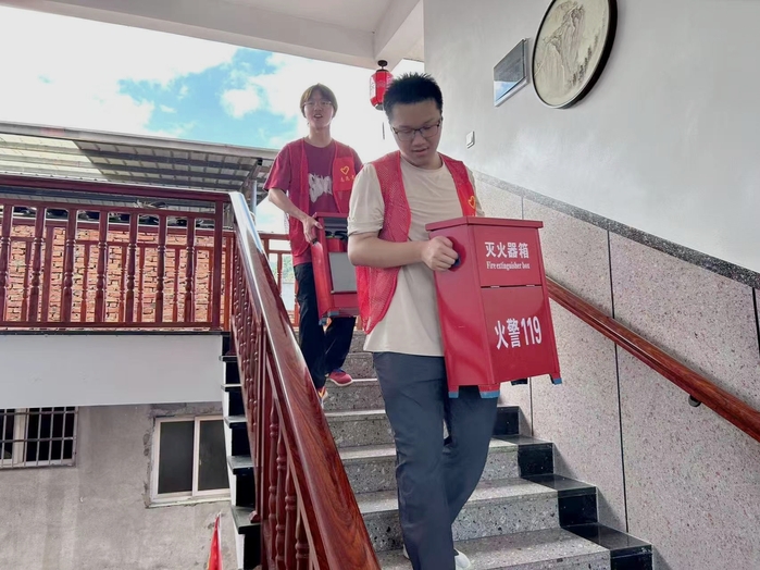 为进一步提升养老院消防安全管理水平,增强院内老人及工作人员的消防安全意识和应急处置能力,7月8日,Beat365中文官方网站岐彩青春暑假实践队联合福安市赛岐镇宅里村幸福院开展消防演练工作。数十名实践队员身着统一标识的“红马甲”,讲解相关防火知识,演示灭火器的使用等,为老人们的晚年生活筑牢“安全屏障”。