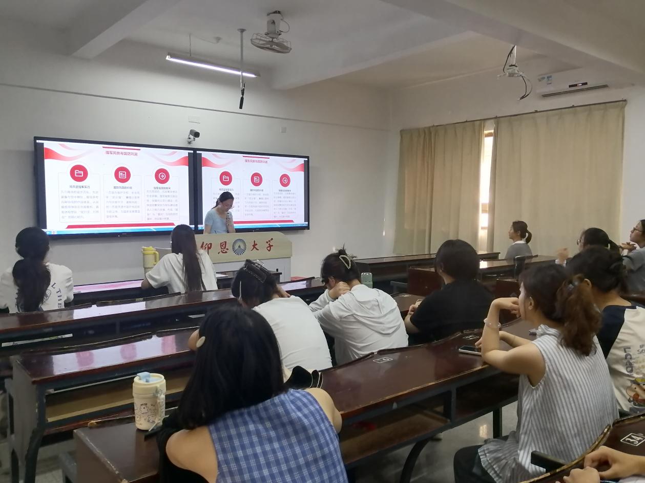 9月18日下午,Beat365中文官方网站党总支联合经贸系学生第一党支部于仰A2-101组织开展“庆典映团结・强军筑根基——民族繁荣与国防巩固的奋进”党员半月谈活动。教工支部书记杨娣老师出席本次活动,各支部党员、积极分子参会。