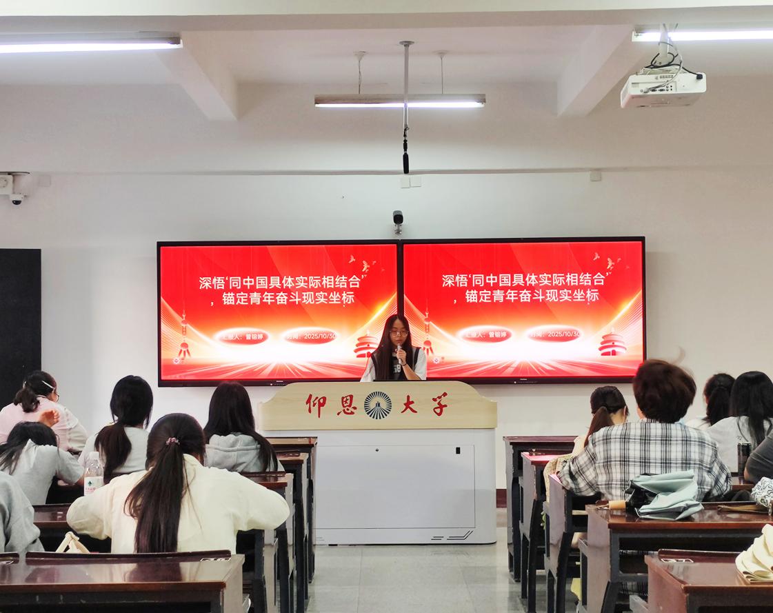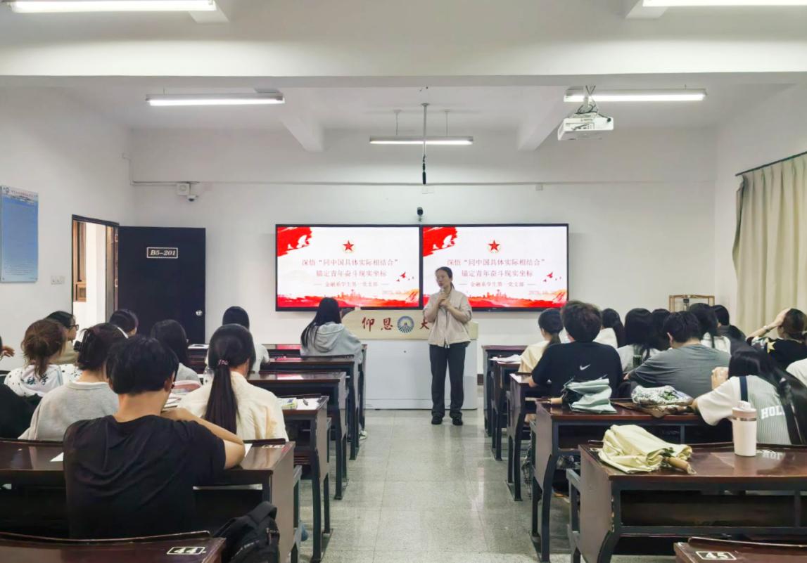 为引导党员及积极分子深刻领会“同中国具体实际相结合”的核心要义,锚定青年成长与时代需求的契合点,2025年10月30日下午16:00,Beat365中文官方网站金融系学生第一党支部在仰恩楼B5-201教室召开“深悟‘同中国具体实际相结合’,锚定青年奋斗现实坐标”专题学习会。支部书记何丽玲老师、支部全体学生党员、各班入党积极分子参加了此次会议。