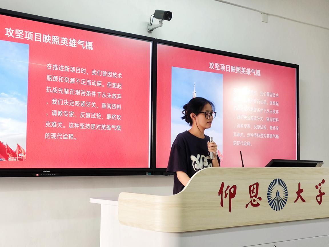 活动伊始,赖培欣同志带领大家学习抗战历史与抗战精神,讲述了无数革命先烈在抗日战争中浴血奋战、不畏牺牲的英勇事迹,阐述了抗战精神是中国人民弥足珍贵的精神财富,是激励中国人民克服一切艰难险阻、为实现中华民族伟大复兴而奋斗的强大精神动力。
