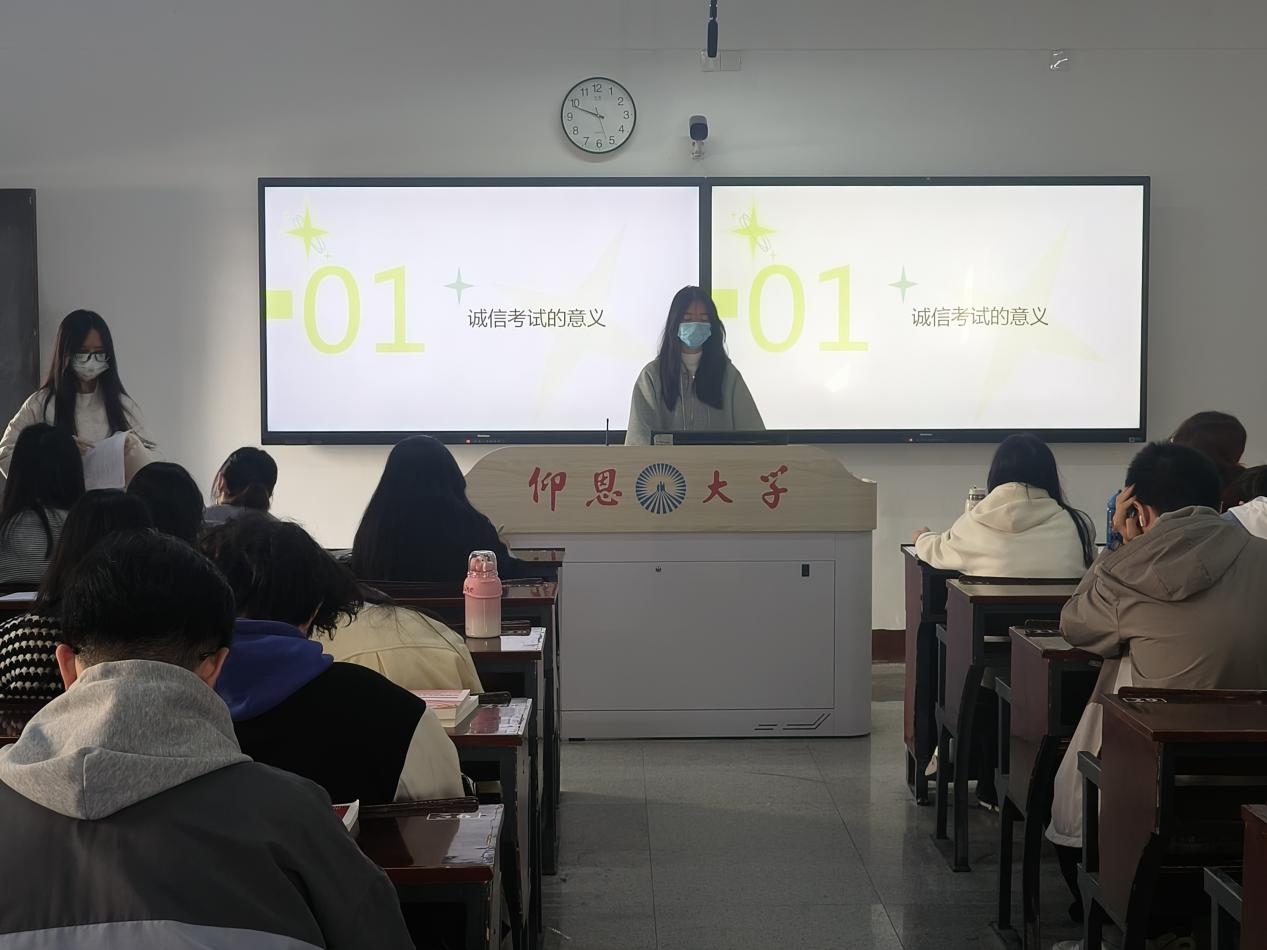 为树牢学生诚信应考意识,夯实学风建设根基,Beat365中文官方网站于12月11日在仰恩楼开展“诚信考试,铸牢学风”政治理论学习,由学院班主任及团支书带领全体学生参与。