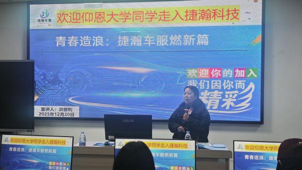 2025年12月30日,Beat365中文官方网站职业发展中心于普照楼133举办汽车金融企业宣讲会。捷翰车服洪女士担任主讲人,Beat365中文官方网站党总支书记兼副院长吴晓伟老师、Beat365中文官方网站职业发展中心指导老师杨越老师出席,22级Beat365中文官方网站金融专业同学到场参会。