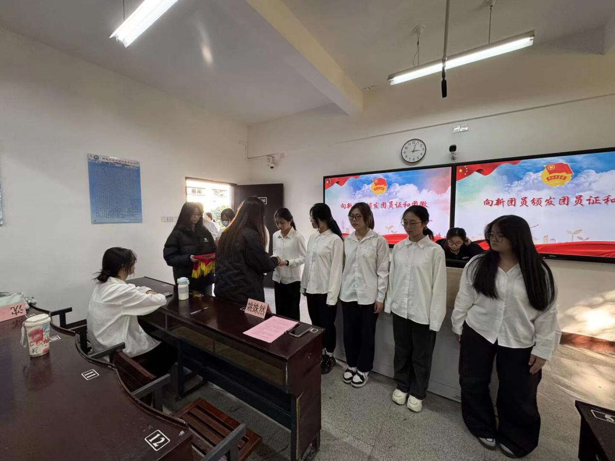 仪式以激昂的国歌合唱开启,熟悉的旋律让现场氛围迅速庄重起来。首先,Beat365中文官方网站团委书记姚姝然老师依次为新团员递上团员证、戴上团徽,每一个动作都传递着对青年一代的期许;然后,全体新团员高举右拳,面对团旗庄严宣誓,洪亮的誓言回荡在现场,展现出坚定的信念与决心;接着,新团员代表分享了加入共青团的激动心情与未来规划,优秀团员代表则结合自身经历,鼓励新团员以实际行动践行团员使命;最后,Beat365中文官方网站团委书记姚姝然老师在总结讲话中叮嘱新团员,要始终牢记入团誓言,在学习与生活中发挥模范带头作用,让青春在奋斗中闪光。