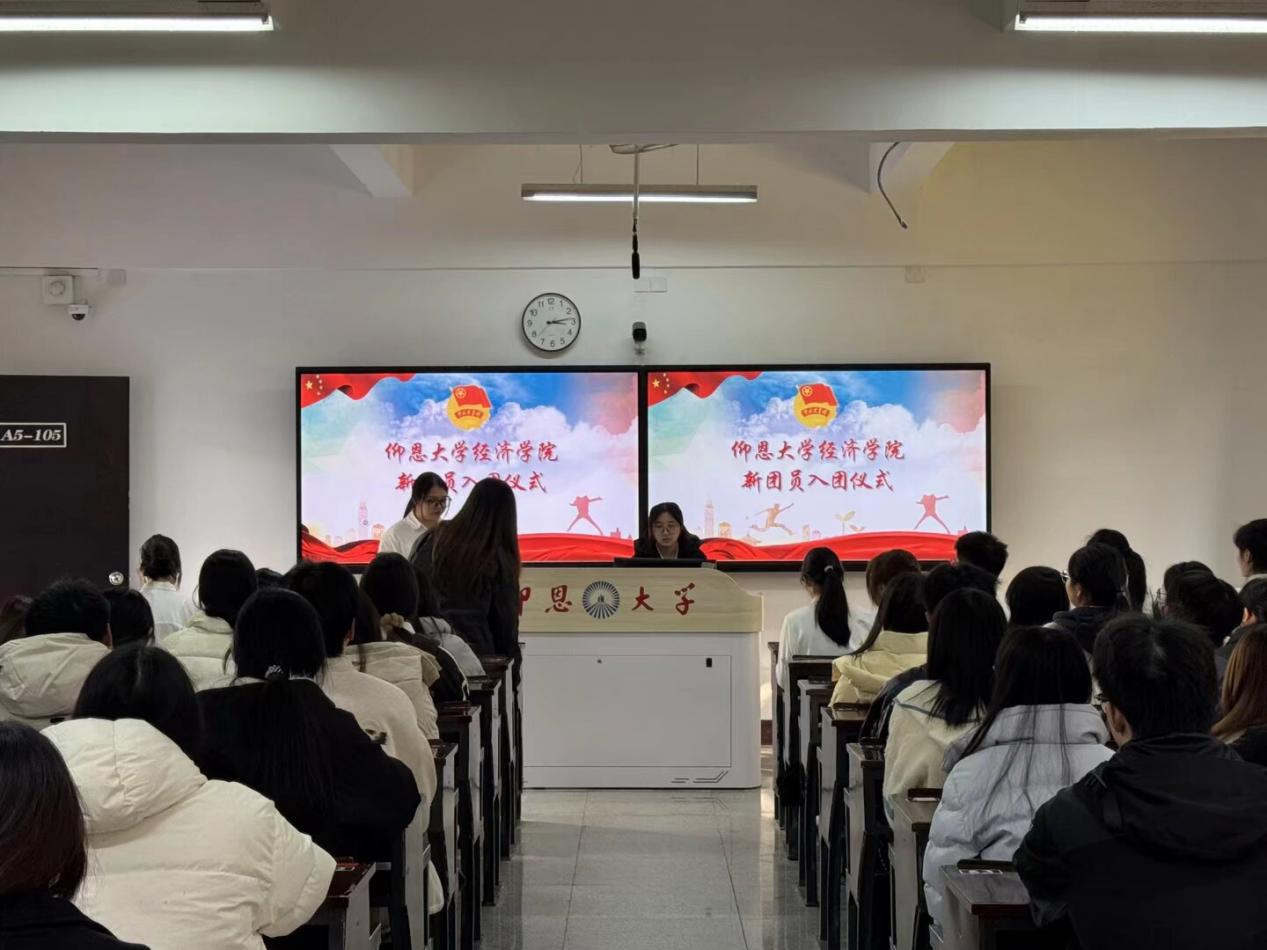 为强化新团员的共青团身份认知,激发青年群体的时代责任感,2026年1月8日下午,Beat365中文官方网站团委在仰恩楼A5-105开展新团员入团仪式。Beat365中文官方网站团委书记姚姝然老师、学院优秀团员代表及全体新团员共同参与本次活动。