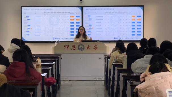 本次讲座中,讲师凭借丰富的行业经验,结合当前经管类专业就业市场形势与行业发展趋势,深入分析了考研与就业的发展前景与竞争格局,通过详实的数据,帮助同学们清晰地认识学历提升在职业发展中的重要价值,理性规划个人成长路线。并现场解析考研院校专业,细致讲解了不同院校的报考难度与适配人群,为同学们精心制定初试各科备考策略。讲座现场,同学们认真记录、积极提问,就自身备考困惑与讲师交流,获得了针对性的指导与建议,氛围热烈。