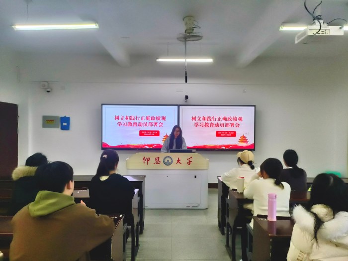 为深入学习贯彻习近平总书记关于树立和践行正确政绩观的重要论述,全面落实上级党组织部署要求,3月12日,经贸系学生第一党支部于仰恩楼A3-103组织召开树立和践行正确政绩观学习教育动员部署会。支部全体党员参会,支部书记黄培真同志主持会议。